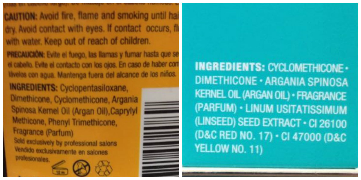 Most hair products brands, using the popularity of the name Argan oil or Moroccan oil contain few drops of the actual oil. There is nothing Moroccan about these ingredients (beside the drop of Argan oil they add):